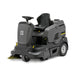Comfortable, extremely compact ride-on vacuum sweeper designed for easy operation and ride comfort. Features forward/reverse traction control, adjustable suction power, an automatic filter cleaning system, pneumatically controlled side brush, and sweeping function that can be switched off when not needed. Great for indoor and outdoor use. Includes a battery indicator and operating hour counter.